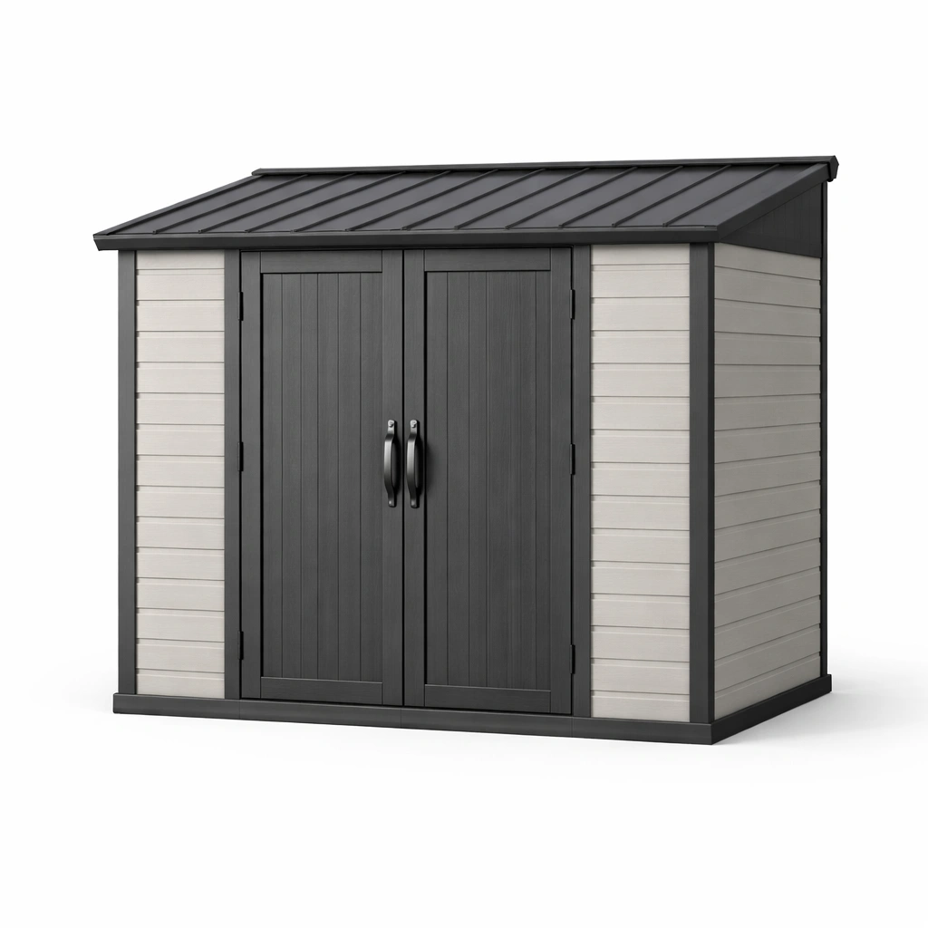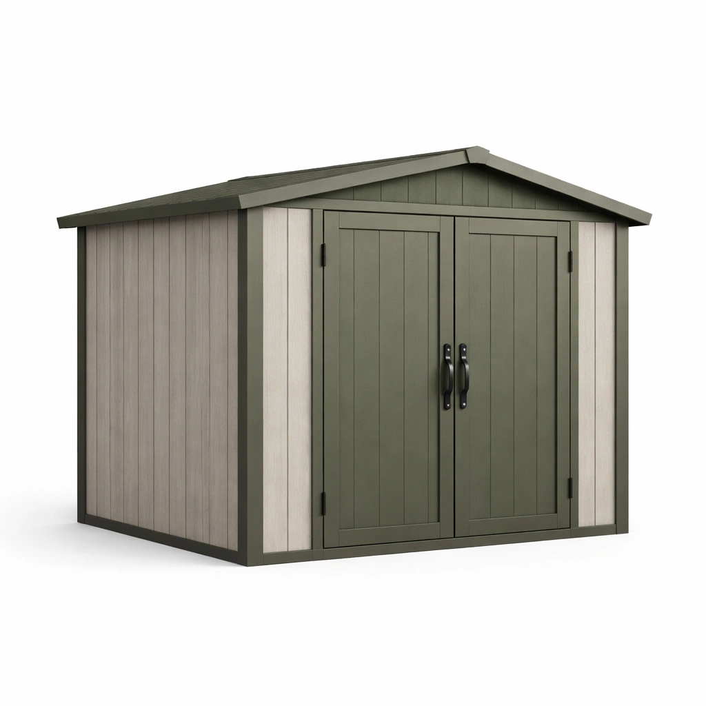 Capanno da giardino in pvc verde e grigio con doppie porte