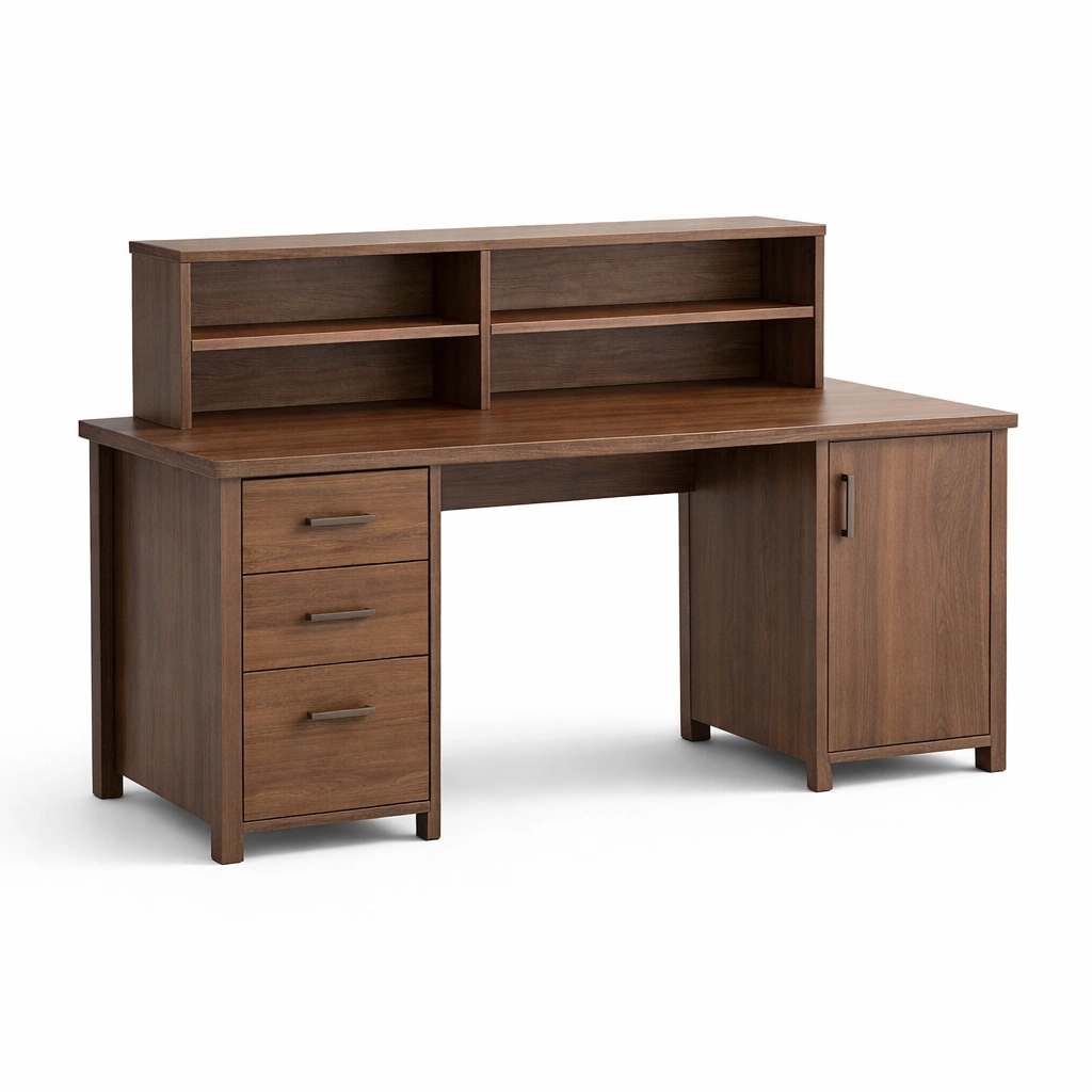 Scrivania in legno mdf con cassetti e ripiani 150x60x110 cm