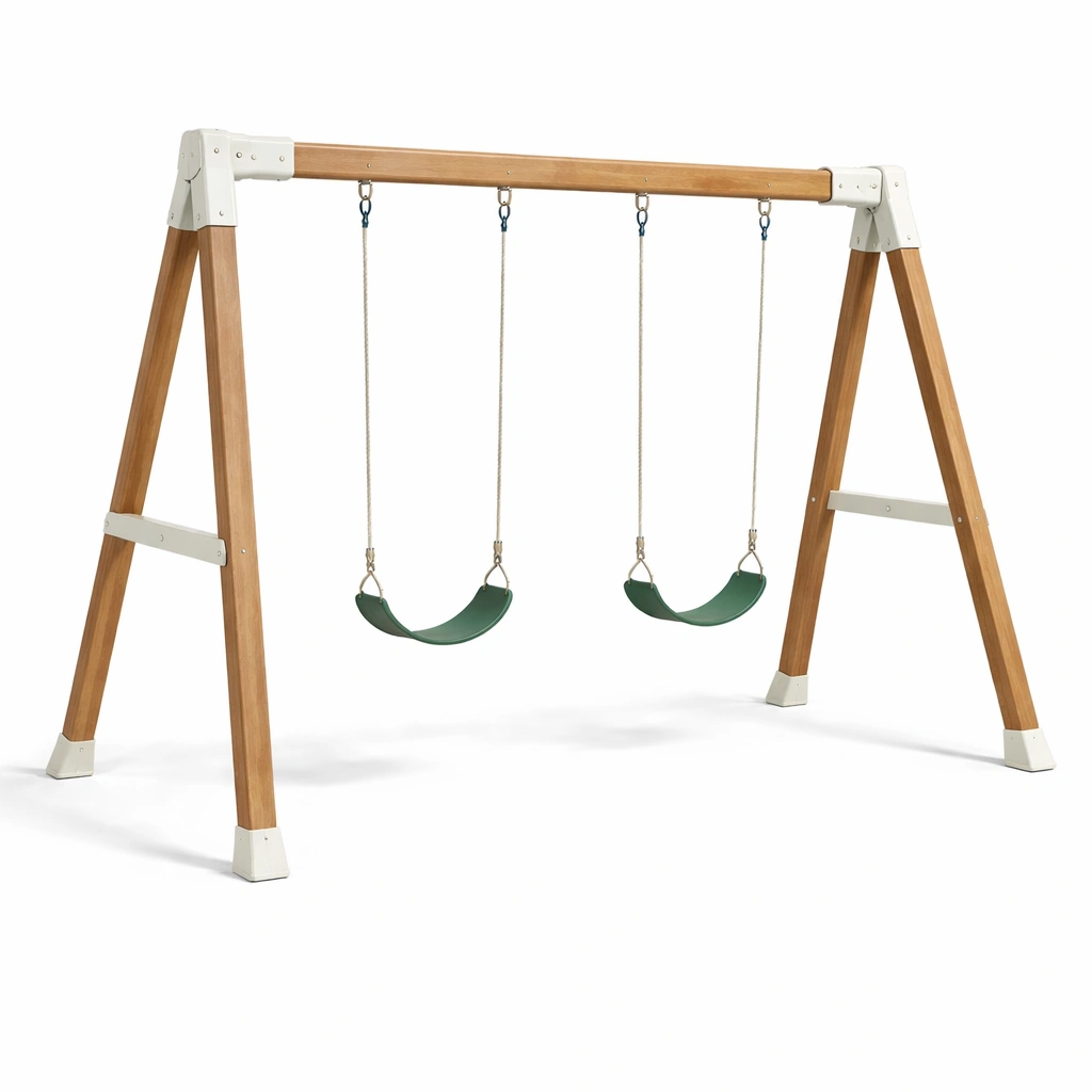 Set di altalene in legno con sedili in plastica verde